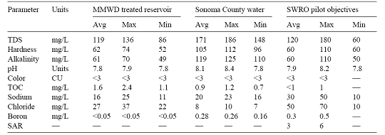 表2. 美國加州市政水中心海水淡化系統(tǒng)的后處理水質(zhì)目標