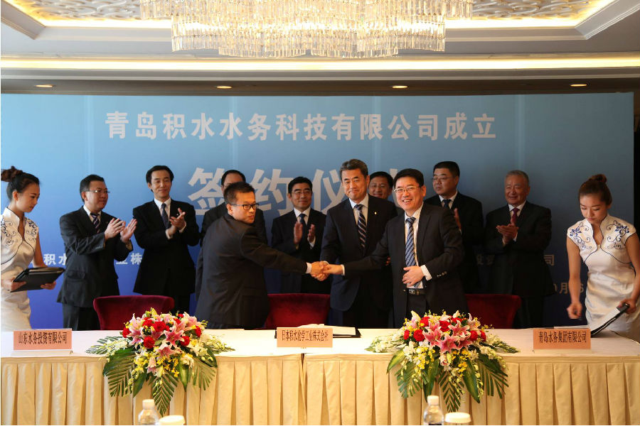 儀式由集團(tuán)公司李敬明副總經(jīng)理主持,日本積水化學(xué)工業(yè)株式會社董事、亞洲及中國區(qū)董事長佐藤公厚和市北區(qū)區(qū)委副書記、區(qū)政府區(qū)長張杰為簽約儀式致辭。隨后日本積水化學(xué)工業(yè)株式會社董事、亞洲及中國區(qū)董事長佐藤公厚、青島水務(wù)集團(tuán)董事長、總經(jīng)理魏成吉、山東水務(wù)投資有限公司副總經(jīng)理徐睿共同簽署了青島積水水務(wù)科技有限公司合資經(jīng)營合同。